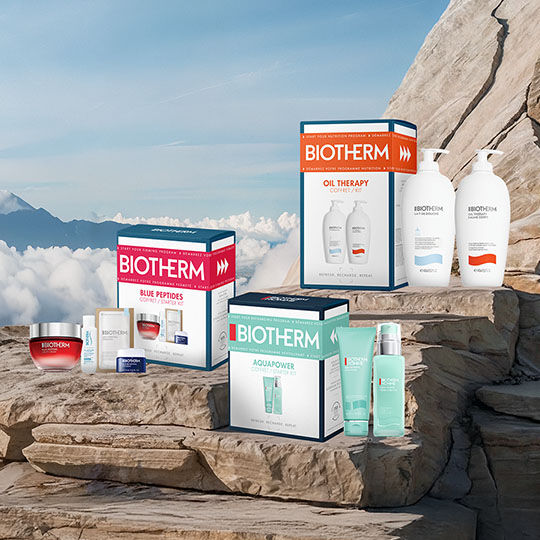 Bienvenue chez Biotherm, la marque de beauté pour femmes et hommes née de l’eau et engagée pour la protection des océans depuis 2012 à travers le programme Water Lovers. Nous nous engageons ainsi chaque jour à créer des soins plus naturels, efficaces et respectueux des océans. Nous nous appuyons sur la Bioscience Bleue, une technologie de pointe qui associe la nature et la science, et nous permet d’amplifier les pouvoirs extraordinaires de la nature pour créer des soins sûrs & durables pour préserver les ressources de la planète. Comme en témoigne notre actif star, le Life Plankton, présent dans tous nos produits. Ingrédient 100% naturel, il est breveté et issu de 30 années de recherche. Nos soins sont toujours synonymes de plaisir sensoriel, grâce à des textures fraîches et fondantes, et au design ergonomique de nos packagings durables. Pour votre visage, découvrez un univers de crèmes hydratantes et crèmes anti-âge, des soins performants qui font fondre de plaisir votre peau. Sans parler des sérums visage à l’incroyable pouvoir régénérant du Life Plankton. Marque pionnière de la cosmétique masculine depuis 1985, Biotherm offre une gamme de soins homme dédiée, parfaite pour leurs besoins particuliers. Chouchoutez votre corps avec notre offre de soins du corps globale, pour le nettoyer, le gommer et l’hydrater au quotidien, dans un rituel sensoriel et efficace.